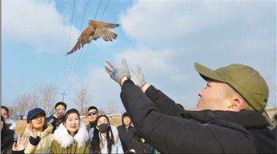 山東省青島市城陽區野生動植物保護志愿者在白沙河入海口濕地,放歸一只救助的國家二級重點保護動物紅隼。 王海濱攝