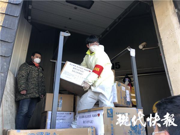加入了洪山區志愿者之后,我們有了 " 洪山青年突擊隊 " 的袖章。2 月 17 日,洪山區有 6 噸物資要送往武漢科技會展中心方艙醫院,我在群里發了消息之后,一下子 20 多輛車從武漢的各個地方開往倉庫,然后一車一車運往醫院。我等紅綠燈的時候,旁邊一輛軍車內的小哥哥把車窗搖下來,向我敬了一個軍禮,一瞬間,我覺得很鼓舞。