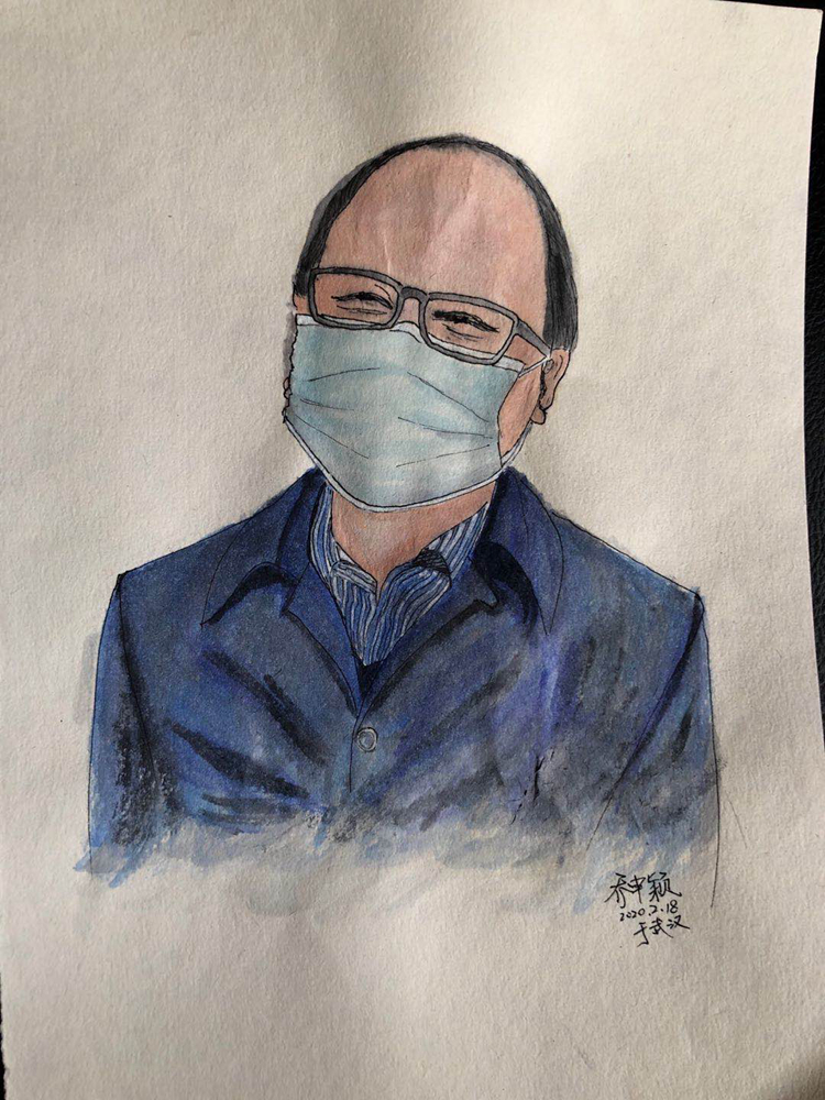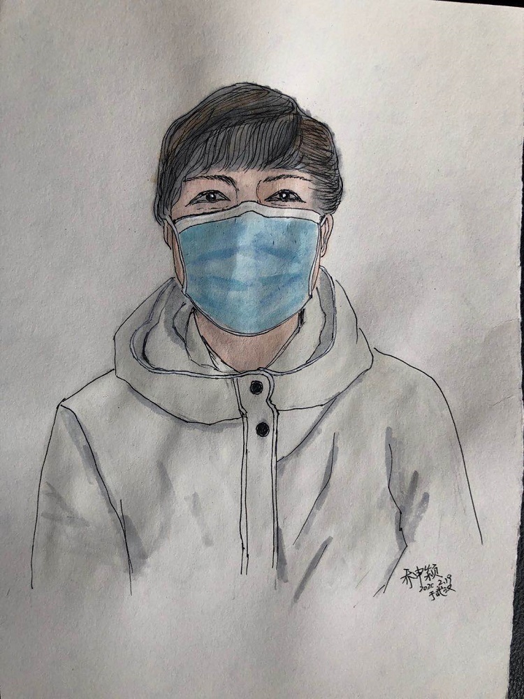 剛開始就是正常的寫稿拍視頻,隨著時間的推移,就特別想畫畫。這個城市里充滿了觸動心靈的瞬間,可能是一個笑臉,可能是一個手勢。我總覺得光是寫下來、拍下來,還遠(yuǎn)遠(yuǎn)不夠,只有把它畫下來,才真正能把我那一刻的感動也一起收藏起來。當(dāng)時武漢根本買不到顏料,我請同事幫忙從北京帶過來,2月16號的時候開始畫。第一個想到的就是采訪過的醫(yī)護(hù)人員的笑臉。因為大家都崩得很緊,好多醫(yī)護(hù)人員采訪中說著說著就哭了。雖然對采訪來說可能是件好事,但我總感覺很愧疚,覺得為個采訪讓人又難過一次。后來就形成一個習(xí)慣,每次我都要問一個問題:今天有沒有開心的事呀?或者說:咱換個話題,說點高興的!他們給了我各種各樣的答案,但是不管是為什么高興,那一刻他們的笑容都特別燦爛特別美好。所以我把他們的笑畫了下來,希望更多的人能看到,能從中汲取力量。
