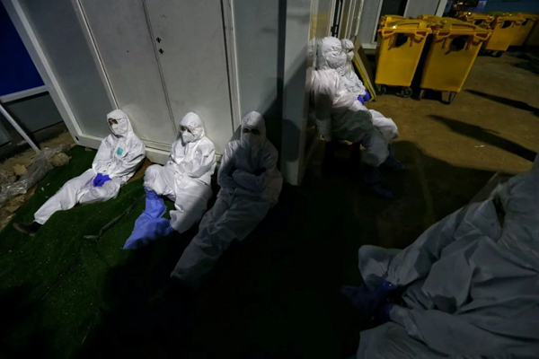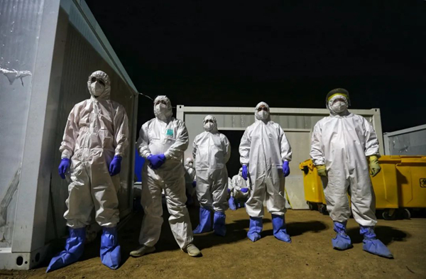 雷神山醫院負責處置清運醫療廢物的志愿者們(攝影:崔萌)