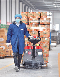 陜西咸陽武功縣,一家電商企業(yè)工作人員在運(yùn)輸貨品。新華社發(fā)