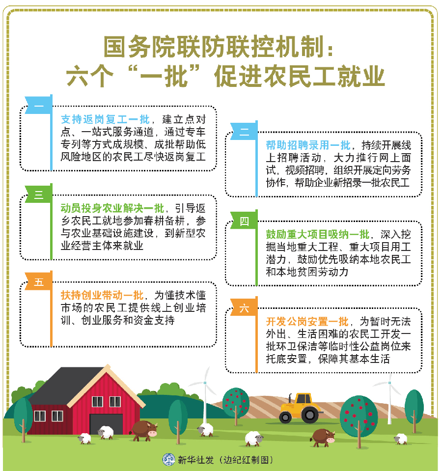 國務院聯防聯控機制:六個“一批”促進農民工就業-新華網