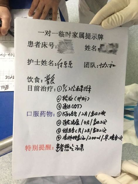 我們從人文護(hù)理的角度出發(fā),聯(lián)合武漢協(xié)和醫(yī)院成立了一支以關(guān)愛患者心理和生活的“臨時家屬”護(hù)理隊伍。三十多名名護(hù)士踴躍報名,加入到了這個有愛的隊伍中。為確保人文護(hù)理項目達(dá)到預(yù)期效果,病區(qū)制定了《“臨時家屬”管理規(guī)范》《人文關(guān)懷方案》。