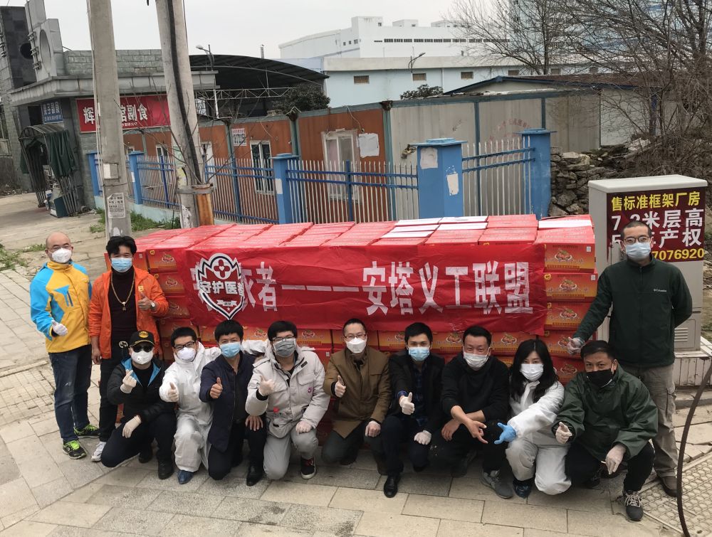 到現在也不知道這些志同道合的伙伴們都是什么人,大家都在埋頭按指令干活,無暇寒暄。隊里有幾個年輕人,玩命地奔忙在各個貨運倉庫。就像那天的40噸酒精,完全靠他們扛上扛下,再送到一個個物資告急的機構手中。