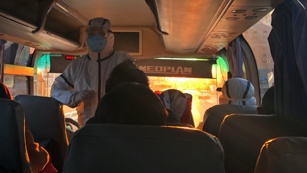 6、抵達:17:45,專列抵達北京西站,乘客根據(jù)指引到所在區(qū)的集合地點集合,統(tǒng)一前往區(qū)里安排的分流地點。記者乘坐豐臺區(qū)組織的大巴,前往豐臺體育中心。