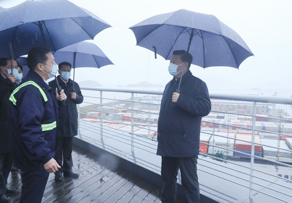 從新華社發(fā)出的現(xiàn)場(chǎng)照片看,總書記在寧波舟山港穿山港區(qū)碼頭上沒有佩戴口罩。↓↓↓