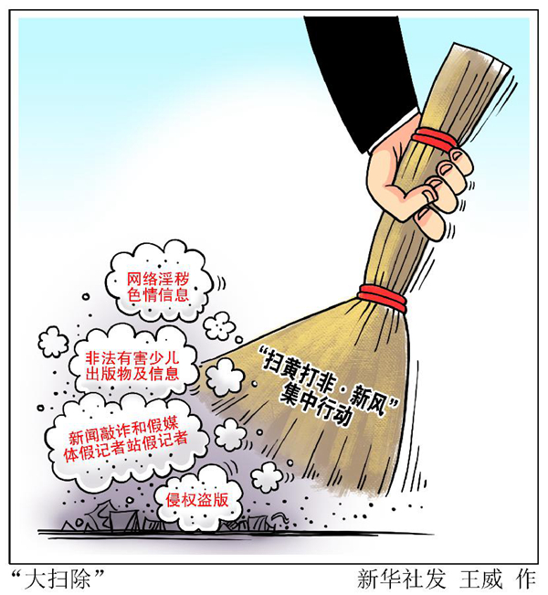 據介紹,集中行動以互聯網為主戰場,深入推進“凈網2020”“護苗2020”“秋風2020”專項行動,對網絡淫穢色情信息、非法有害少兒出版物及信息、新聞敲詐和假媒體假記者站假記者、侵權盜版等四類問題進行“大排查”“大掃除”。