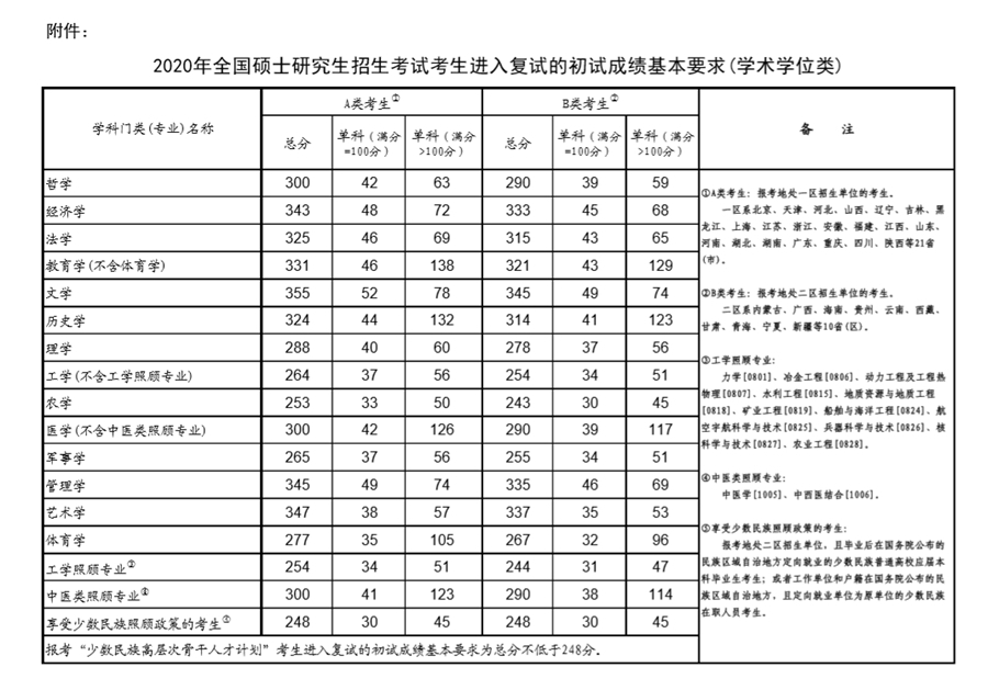 今日,教育部公布《2020年全國碩士研究生招生考試考生進入復試的初試成績基本要求》(國家分數線),并印發通知,就做好2020年全國碩士研究生復試工作進行部署。