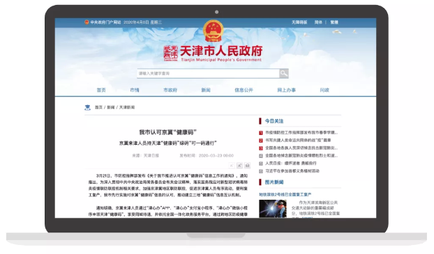 京冀來津人員通過“津心辦”APP、“津心辦”支付寶小程序、“津心辦”微信小程序申領(lǐng)天津“健康碼”,享受同城待遇,并依托全國一體化政務(wù)服務(wù)平臺,通過跨地區(qū)防疫健康信息數(shù)據(jù)共享,實現(xiàn)京津冀“健康碼”信息互認(rèn),生成天津“健康碼”,憑碼出行。