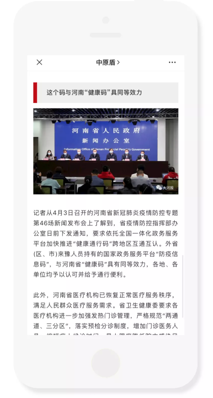 河南省依托全國一體化政務(wù)服務(wù)平臺加快推進“健康通行碼”跨地區(qū)互通互認(rèn)。外省(區(qū)、市)來豫人員持有的國家政務(wù)服務(wù)平臺“防疫信息碼”,與河南省“健康碼”具有同等效力,各地、各單位均予以認(rèn)可并給予通行便利。