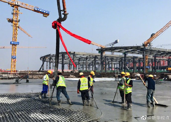 據中國中鐵建工集團介紹,京雄城際鐵路雄安站混凝土主體結構30日封頂。雄安站設計呼應了雄安新區的水文化,站房整體造型猶如滴落的露珠。未來,雄安站投入使用后,高速列車只需30多分鐘就能將乘客從北京帶到雄安。(丁靜、孫立君)