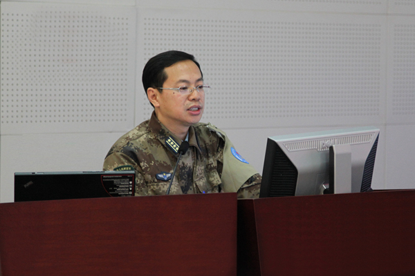 張國春在作關(guān)于兵棋系統(tǒng)改進(jìn)的報(bào)告(資料照片)。 新華社發(fā)(楊俊光 攝)
