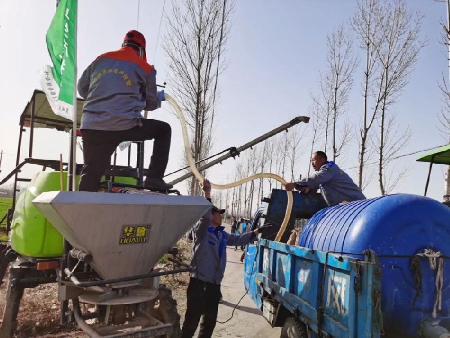 農機手接單后,前往農田進行農業勞務服務。圖為給自走式噴霧機加注“除草劑” 李虎威 攝