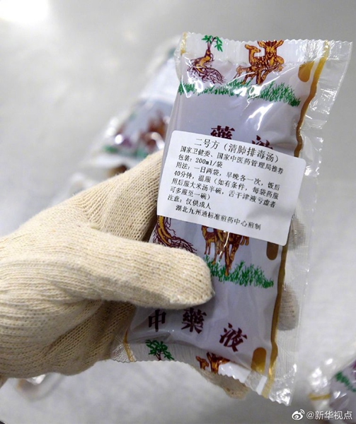 說明還對“清肺排毒湯”的煎煮方法、程序和使用方法等進行了規(guī)范。例如,“清肺排毒湯”應使用傳統(tǒng)中藥飲片調(diào)配,水煎煮使用,共煎共煮程序必不可少;為確保藥力精純,不建議與其他方劑、藥物(包括中成藥)同時使用。