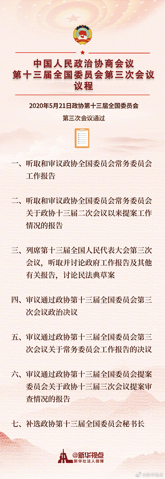 中國人民政治協商會議第十三屆全國委員會第三次會議議程-新華網