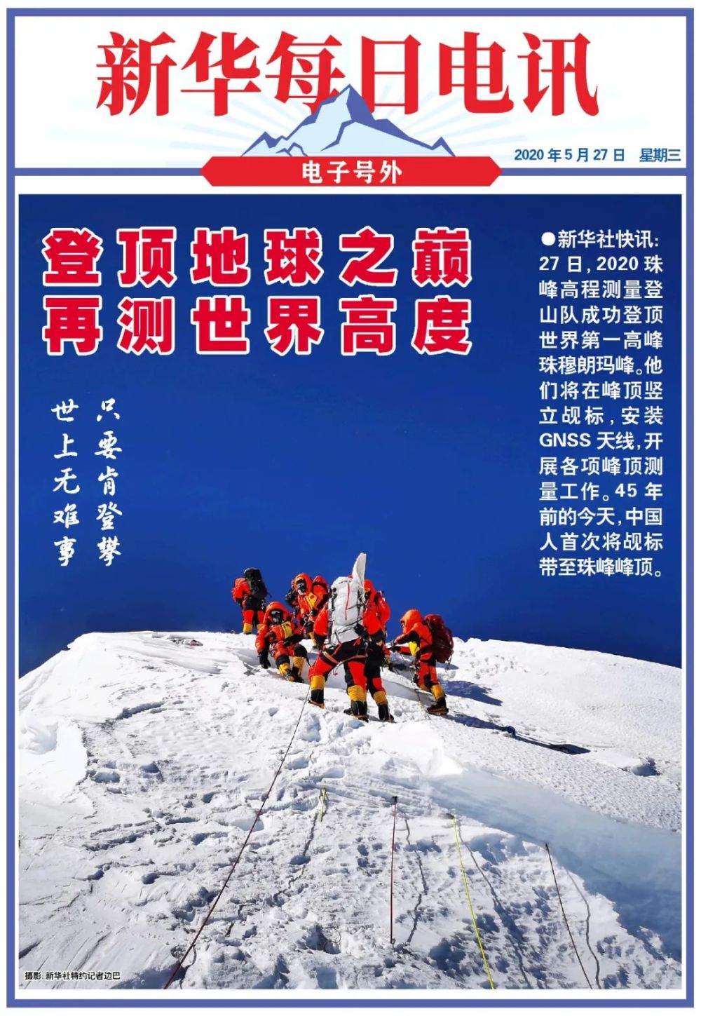 新華每日電訊電子號外又來了:登頂,中國再為世界測高!-新華網