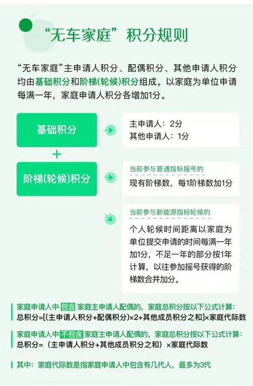 如果家庭成員中有多名成員符合作為家庭主申請(qǐng)人的條件,是可以組合成多個(gè)“無(wú)車(chē)家庭”來(lái)申請(qǐng)指標(biāo)的。不過(guò),作為一個(gè)家庭來(lái)申請(qǐng)時(shí),家庭申請(qǐng)人越多,家庭總積分就越高,獲得指標(biāo)的概率也更高。