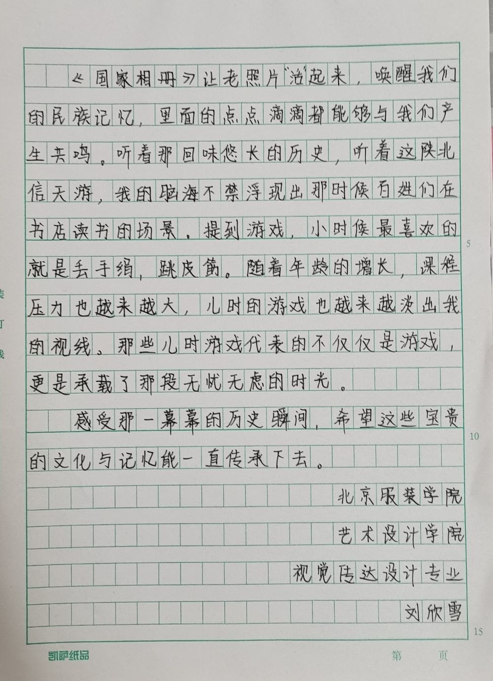 ↑北京師范大學(xué)學(xué)生劉曉航的觀后感