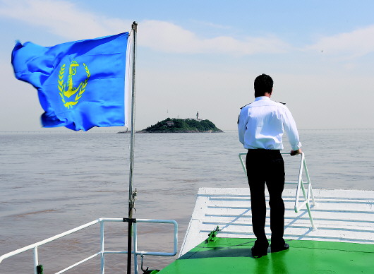 5月20日,葉家第四代燈塔工葉靜虎站在補給船上駛向兒子葉超群工作的七里嶼燈塔。