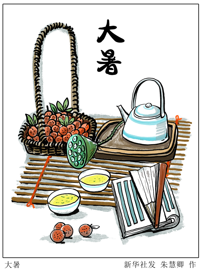 “赤日幾時過,清風(fēng)無處尋”。“大暑”是一年中最熱的一個節(jié)氣,古籍《月令七十二候集解》中解釋說:“暑,熱也。就熱之中分為大小,月初為小,月中為大”。酷熱多雨、高溫潮濕是此時節(jié)的天氣特點,“桑拿天”幾乎成為常態(tài)。