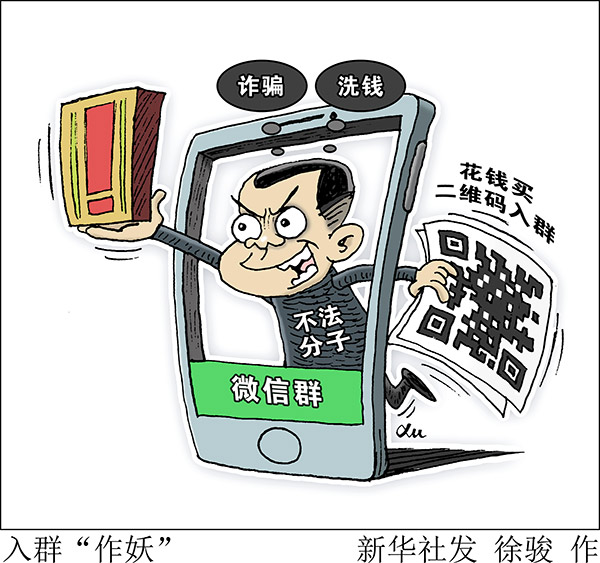 “新華視點”記者調(diào)查發(fā)現(xiàn),微信群的二維碼在網(wǎng)絡(luò)上被倒賣,一些不法分子借此實施詐騙或洗錢。