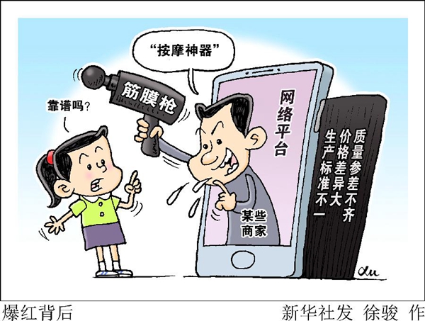 “10分鐘按摩輕松擺脫疲勞”“瘦肚子瘦腿局部減脂神器”“腰酸背痛,哪兒難受打哪兒”……近年來(lái),筋膜槍成為一款酷炫的按摩產(chǎn)品,類似產(chǎn)品宣傳網(wǎng)上隨處可見(jiàn)。從百萬(wàn)粉絲的微博大V博主到流量飛起的直播達(dá)人,不少人在賣力推廣、宣傳帶貨。