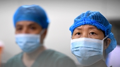 8月17日,甘肅省第二人民醫院介入醫學科主任醫師余新林在護士的幫助下佩戴鉛帽,準備進行手術。新華社記者 朱藝琳 攝