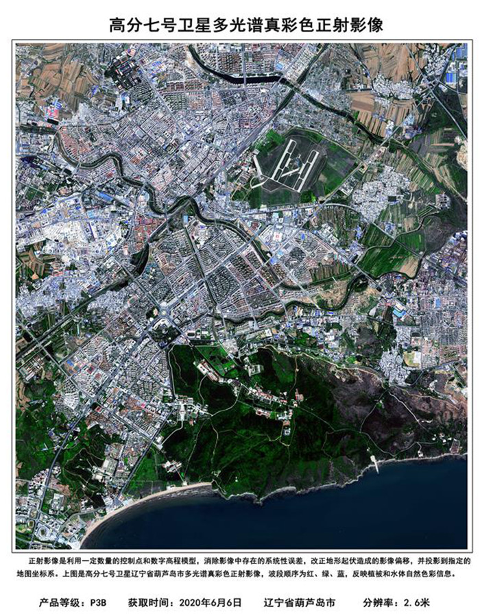 這是高分七號衛(wèi)星于2020年6月6日獲取的遼寧省葫蘆島市的多光譜真彩色正射影像。 新華社發(fā)(國家航天局提供)