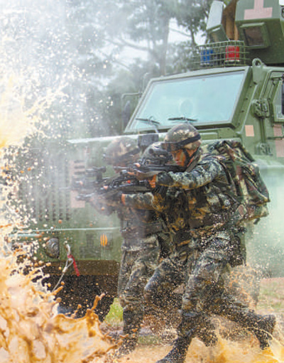 轉過頭看看戰士們,各個神情自若,有說有笑。在叢林中經歷400多天的艱苦訓練,自然環境對他們來說已算不得什么挑戰。