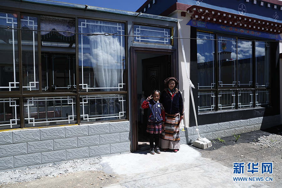 白瑪和她的媽媽在家門口合影。新華網記者焦鵬 攝