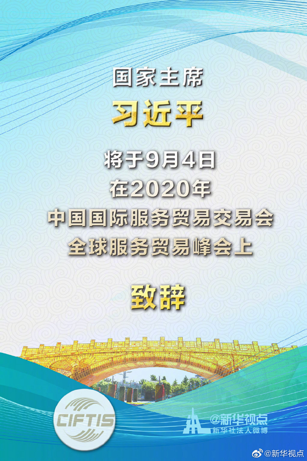 新華社北京9月3日電 外交部發言人華春瑩3日宣布:2020年中國國際服務貿易交易會全球服務貿易峰會將于9月4日在北京舉行。國家主席習近平將在峰會上致辭。