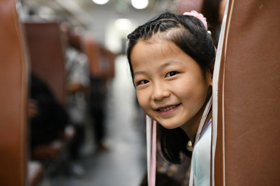 開學前夕,從寧強站上車前往漢中的小學生旅客愉快乘車。(8月22日攝)