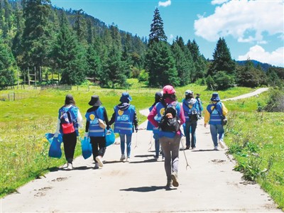志愿者在魯朗出發(fā)準備撿垃圾。宋衛(wèi)華攝