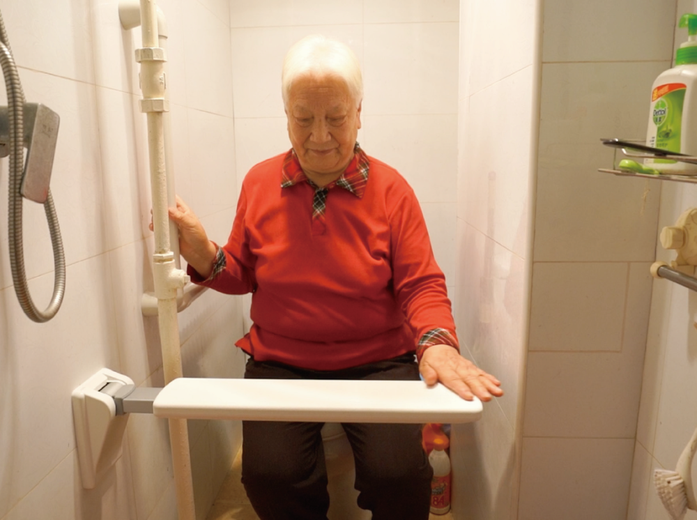 在蔡琴英的家里,本刊記者聽她一一講解、展示了適老化改造的成果:床邊的應急呼叫報警裝置、走廊墻角的紅外感應夜燈、浴室里的防滑坐浴椅和防滑墊……