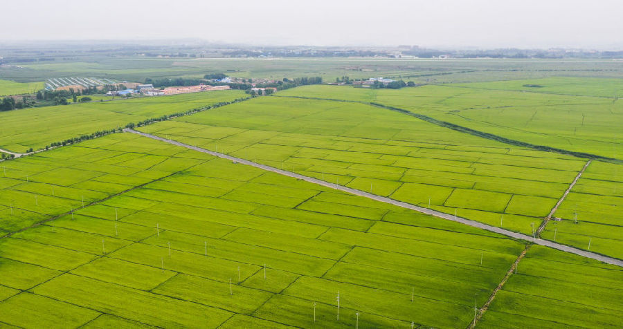 這是吉林市昌邑區(qū)大荒地村周邊的高標準水稻田(8月13日攝,無人機照片)。新華社記者 許暢 攝