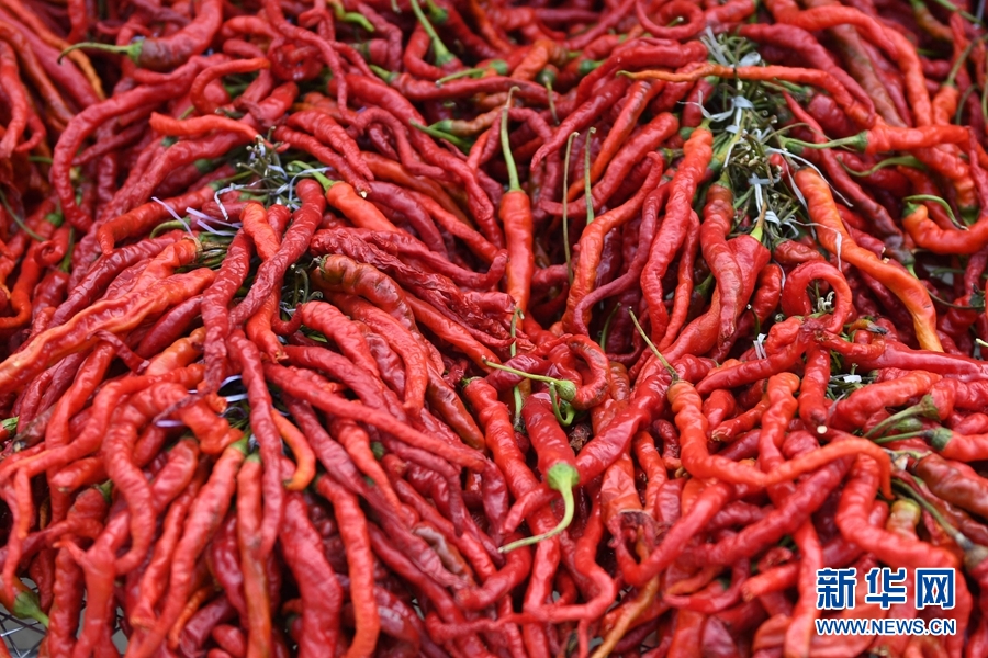 2020年慶祝中國農民豐收節(jié)暨循化縣消費扶貧“辣椒節(jié)”現場展示銷售的線辣椒。(新華網潘彬彬攝)