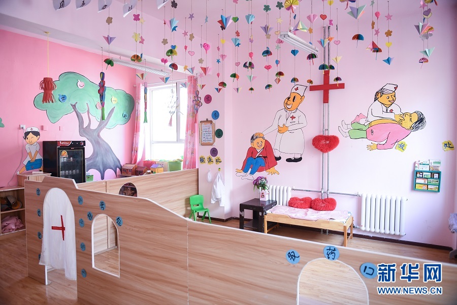 青海省果洛藏族自治州瑪沁縣拉加鎮(zhèn)中心幼兒園的興趣教學室。(新華網(wǎng)潘彬彬 攝)