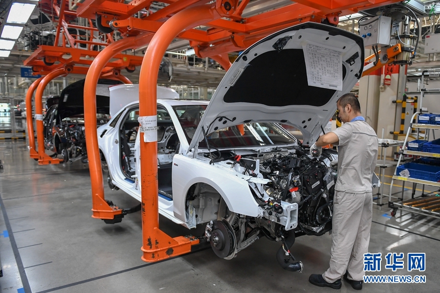 工人在一汽-大眾長春基地總裝車間裝配車輛(9月1日攝)。9月15日,國家統計局數據顯示,8月份,全國規模以上工業增加值同比增長5.6%,增速比7月份加快0.8個百分點。1至8月份,全國規模以上工業增加值同比增長0.4%,增速實現由負轉正。 新華社記者 張楠 攝
