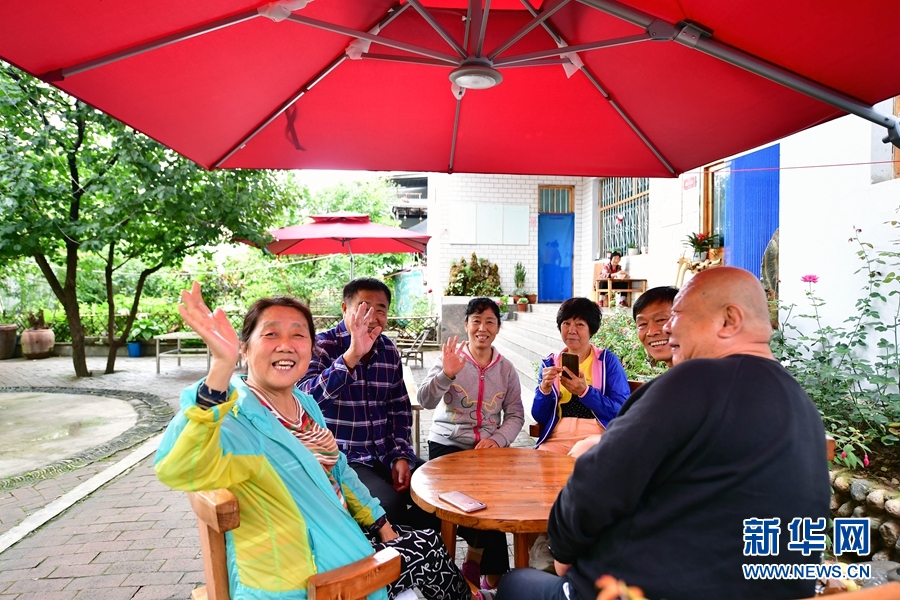 在河南省洛陽市欒川縣叫河鎮,游客在民宿的小院內休憩(8月22日攝)。 新華社記者 馮大鵬 攝