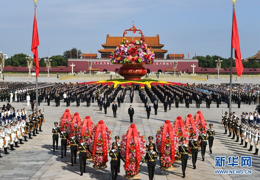 9月30日上午,黨和國家領導人習近平、李克強、栗戰書、汪洋、王滬寧、趙樂際、韓正、王岐山等來到北京天安門廣場,出席烈士紀念日向人民英雄敬獻花籃儀式。 新華社記者 謝環馳 攝