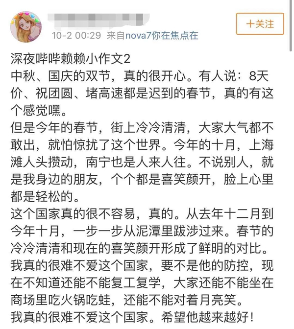 正如網(wǎng)友所說:“這個(gè)國家,真的很不容易。”但也正是因?yàn)樵?jīng)的艱難,才讓所有經(jīng)歷過那些驚惶、擔(dān)憂、迷茫的人,在重回平靜的生活后,會(huì)倍感山川清秀、歲月溫柔,那之前被按下暫停鍵的團(tuán)圓飯、那口早就該喝下的老燒酒、還有那個(gè)欠下好久的擁抱,都會(huì)帶給人更強(qiáng)烈的幸福。