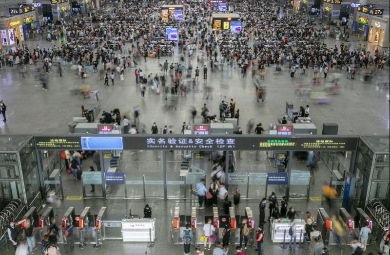 10月1日長三角鐵路發送旅客309.9萬人次,預計2日發送旅客248萬人次,其中上海鐵路全站2日預計發送旅客45.5萬人次 圖源 新華社