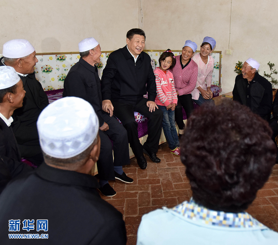 2016年7月18日下午,習近平在寧夏固原市涇源縣大灣鄉楊嶺村村民馬克俊家同一家人和村民代表親切交談。 新華社記者 李濤 攝