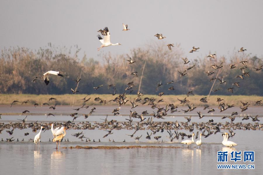 越冬候鳥棲息在鄱陽湖濕地水域(11月5日攝)。新華社記者 彭昭之 攝