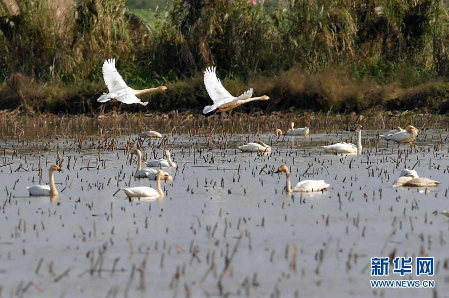 這是11月11日在湖南西洞庭湖國家級自然保護區拍攝的候鳥。新華社記者 陳思汗 攝