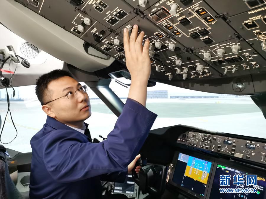 在蓉飛行模擬機運行團隊負責人姜毓琦在工作中(10月16日攝)。新華社發(fā)(中國商飛四川分公司供圖)