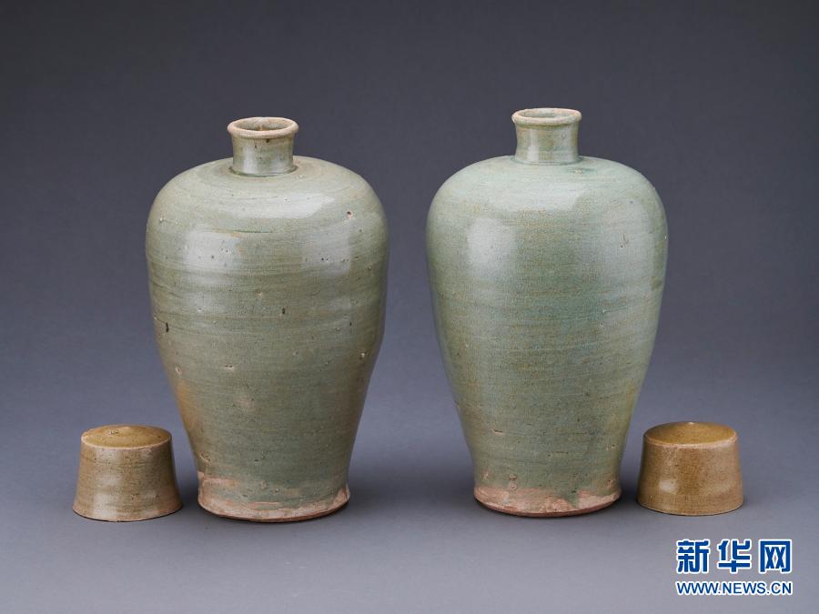 這是從英國回歸的國家二級文物——明代青瓷帶蓋梅瓶(資料照片)。新華社發