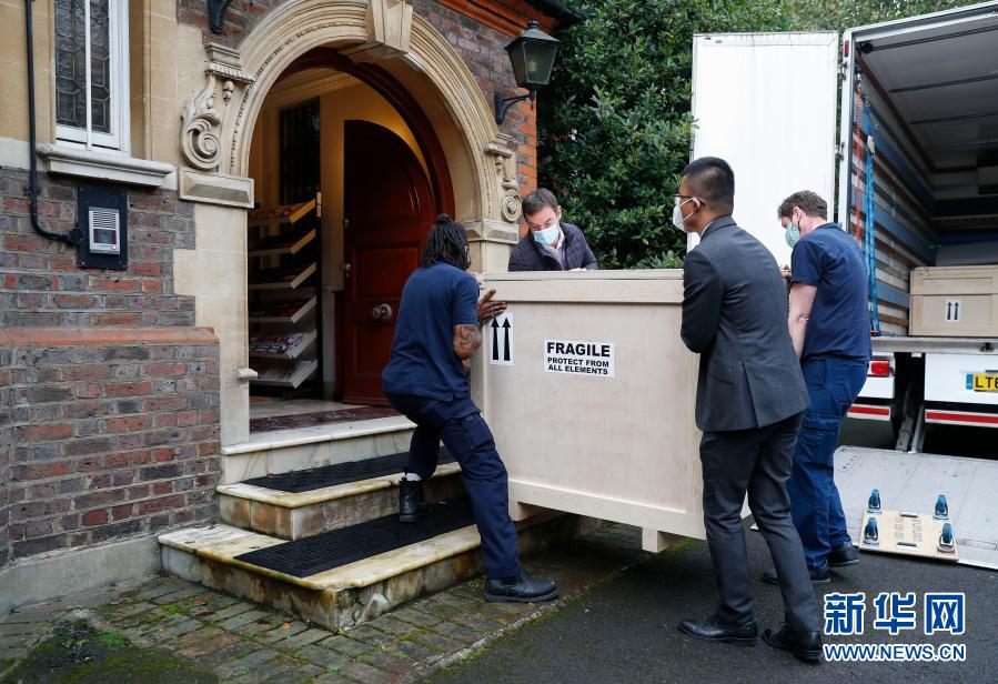 10月16日,在英國倫敦,工作人員協助中國駐英國大使館文化處清點文物。新華社記者 韓巖 攝