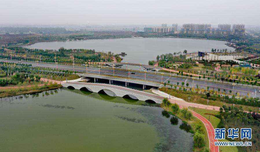 駐馬店市新蔡縣“五湖四帶”生態水系景觀(10月20日攝)。新華社發