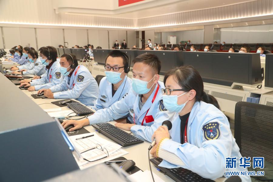 11月29日,航天科技人員在北京飛行控制中心工作。新華社發(北京航天飛行控制中心供圖)